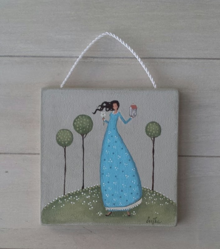 Lesena ploščica z ilustracijo, velikosti 13 cm x 13 cm.