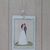 Kovinska ploščica z unikatno, ročno naslikano ilustracijo Poročni par (vrtnice), velikosti 6,5 cm x 10 cm, primerna za dopolnitev vašega darila. Uporabite jo lahko tudi za napis posvetila mladoporočencema.