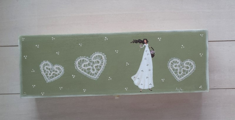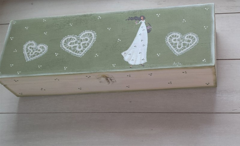 Lesena škatlica za vaše majhne stvari, da bodo vedno pospravljene na varnem, z dekorativno ilustracijo, velikost 33cm x 11 cm x 6,5 cm