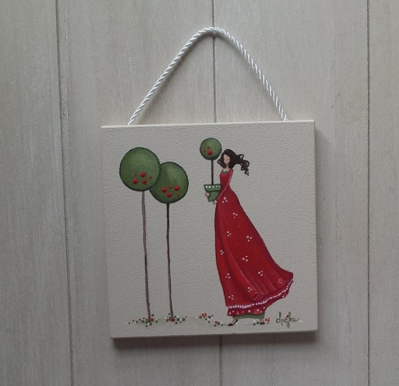Lesena ploščica z ilustracijo, velikosti 13 cm x 13 cm.
