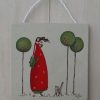 Lesena ploščica z ilustracijo, velikosti 13 cm x 13 cm.