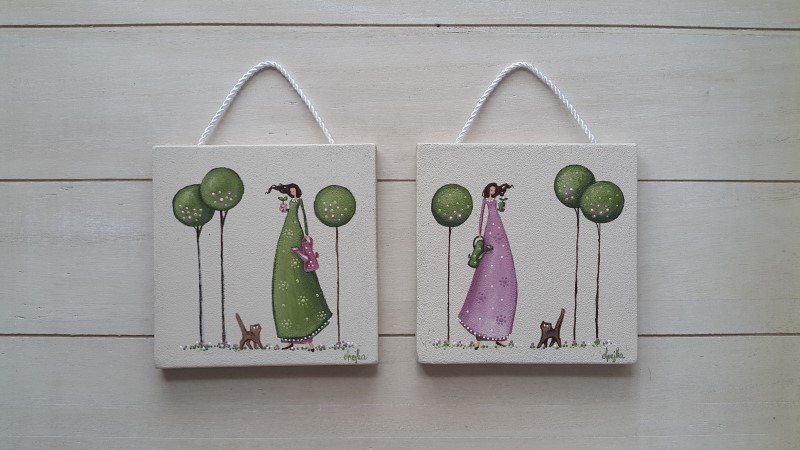 Par Lesenih ploščic z ilustracijo, velikosti 13 cm x 13 cm. Možne tudi druge kombinacije.