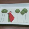 Lesen pladenj, poslikan z akrilnimi barvami, velikosti 35 cm x 35 cm x 6 cm.