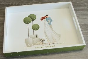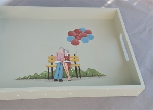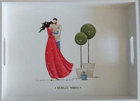 Pladenj vam izdelam po naročilu. Za izdelavo potrebujem 3-5 dni. Ilustracijo je možno prilagoditi vašim željam. Možno je dodati tudi krajše besedilo.