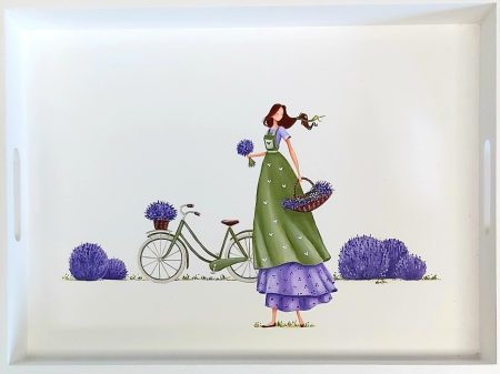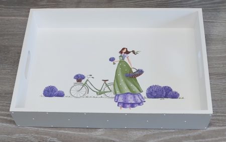 Lesen pladenj, ročno poslikan z akrilnimi barvami, velikosti 38 cm x 28 cm x 4,5 cm.