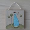 Lesena ploščica z ilustracijo, velikosti 13 cm x 13 cm.