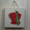 Lesena ploščica z ilustracijo, velikosti 13 cm x 13 cm.