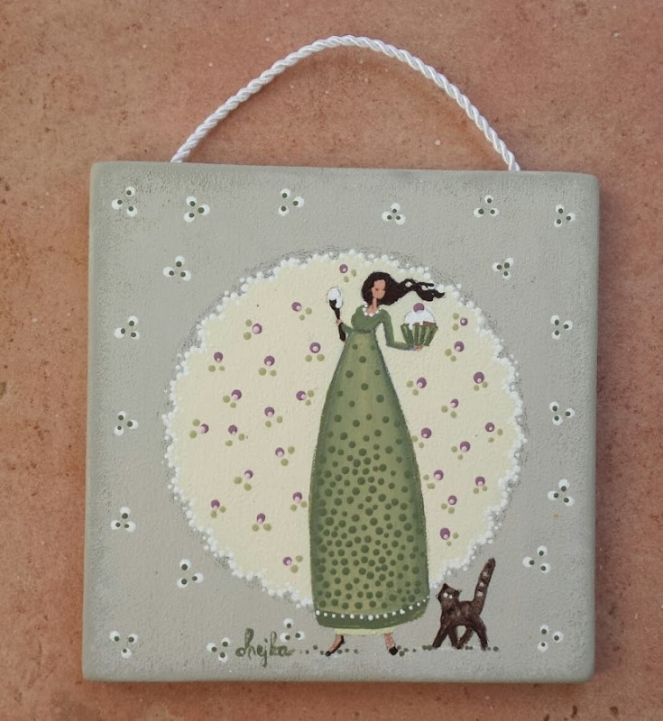 Lesena ploščica z ilustracijo, velikosti 13 cm x 13 cm.