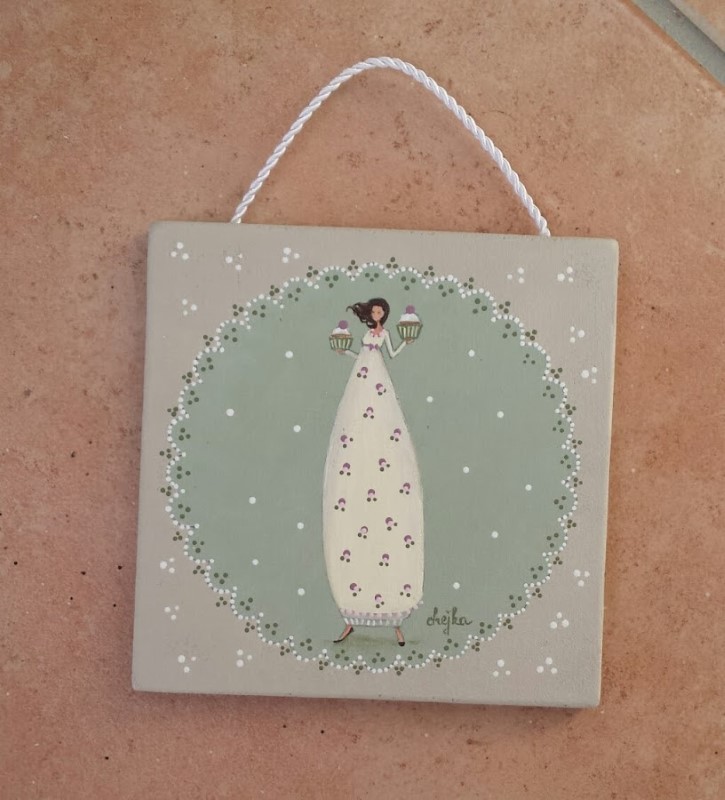 Lesena ploščica z ilustracijo, velikosti 13 cm x 13 cm.
