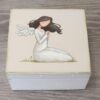 Lesena škatlica z dekorativno ilustracijo poročni par z rožnatimi cvetlicami, velikost 12 cm x 12 cm x 5 cm