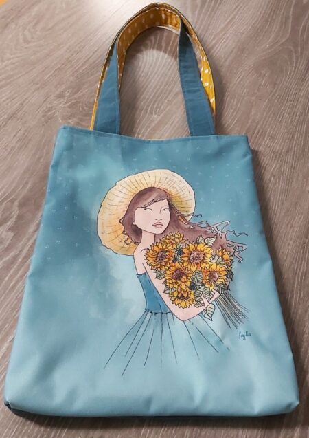 Torbica iz blaga z avtorsko ilustracijo (sublimacijski tisk), velikosti 40 x 30 cm, naramnice so dolge 35 cm.
