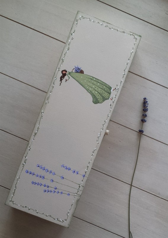 Lesena škatlica za vaše majhne stvari, da bodo vedno pospravljene na varnem, z dekorativno ilustracijo, velikost 33cm x 11 cm x 6,5 cm
