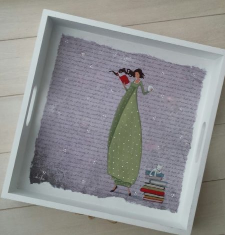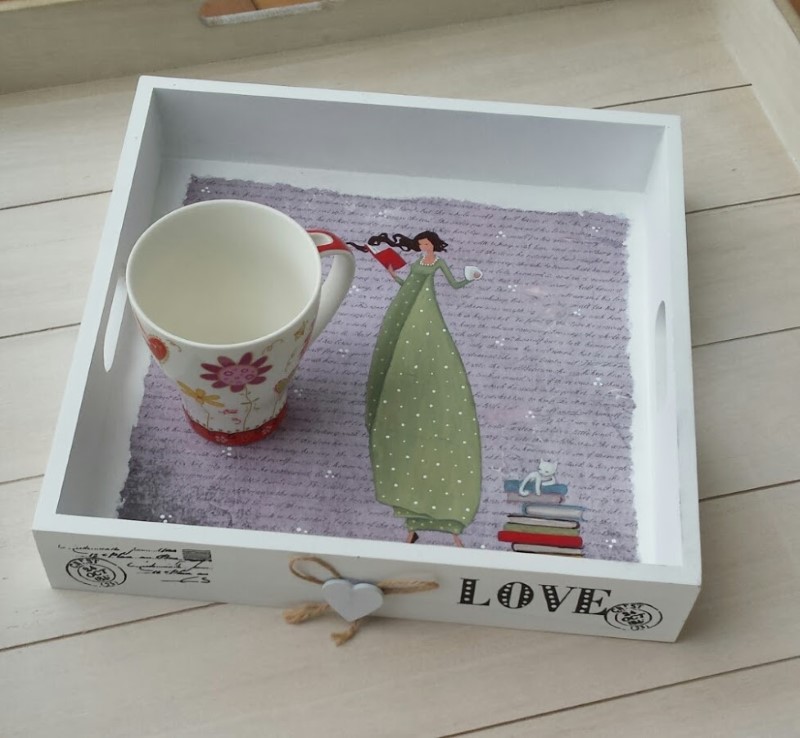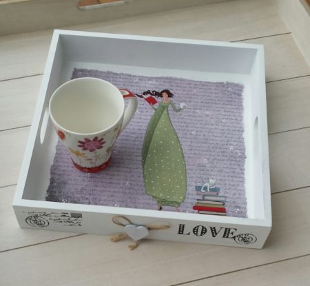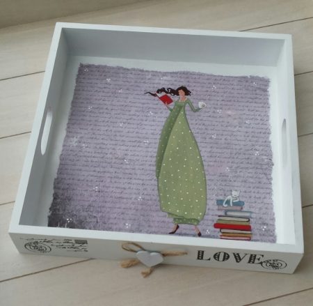 Lesen pladenj, poslikan z akrilnimi barvami, velikosti 30 cm x 30 cm x 5,5 cm